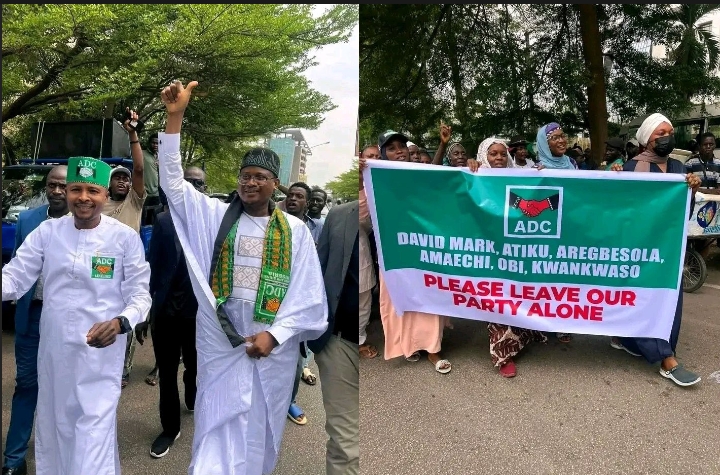 Protesters marched through the streets of Abuja on Thursday, calling on prominent opposition figures—including former Vice President Atiku Abubakar, Peter Obi, Rabiu Musa Kwankwaso, and former Senate President David Mark—to steer clear of the African Democratic Congress (ADC).