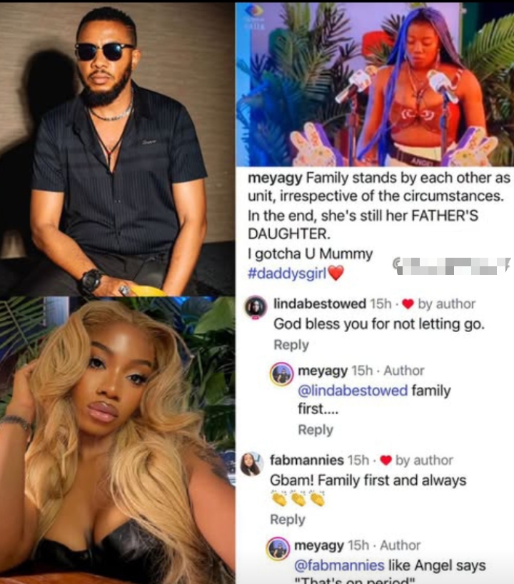 Nigerian reality TV star Angel Smith has received strong backing from her father amid her ongoing relationship dispute with Tunmi.