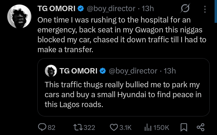 Music video director TG Omori has expressed frustration over his encounters with Lagos street touts, popularly known as agberos, describing their behaviour as so extreme it has changed how he moves around the city.