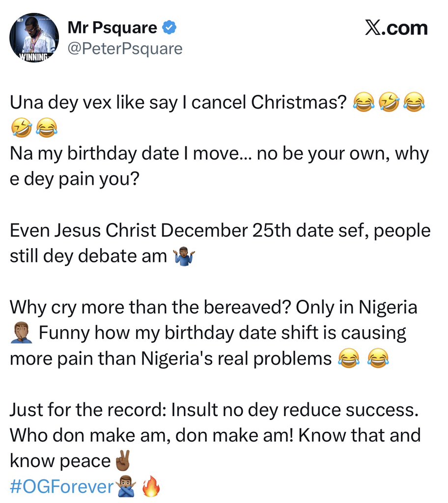 Peter Okoye has responded to the backlash over his decision to change his birthday date, brushing off critics and describing the reactions as unnecessary.
