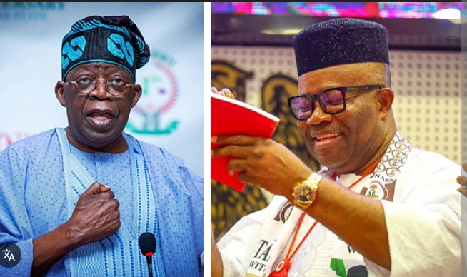 President Bola Ahmed Tinubu on Tuesday drew laughter at the commissioning of the Nigeria Revenue Service building after making a playful remark directed at Senate President Godswil Akpabio.
